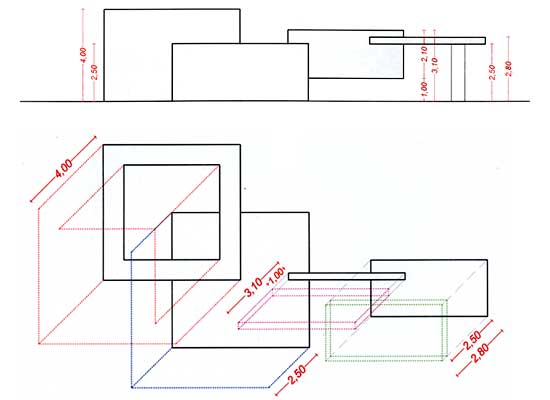 Costruzione della proiezione dei punti e degli spigoli delle superfici sul piano 0 di appoggio dell'oggetto.