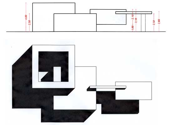 Campitura dell'ombra sui diversi piani orizzontali dell'oggetto.