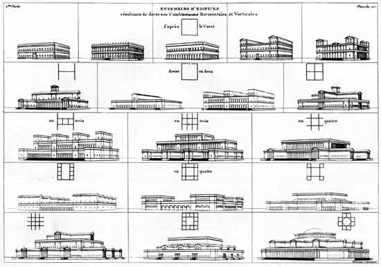 Jean Nicolas Durand, suddivisione del quadrato (1802-1805, Precis des lecons d'Architecture, parte II, tav.20)